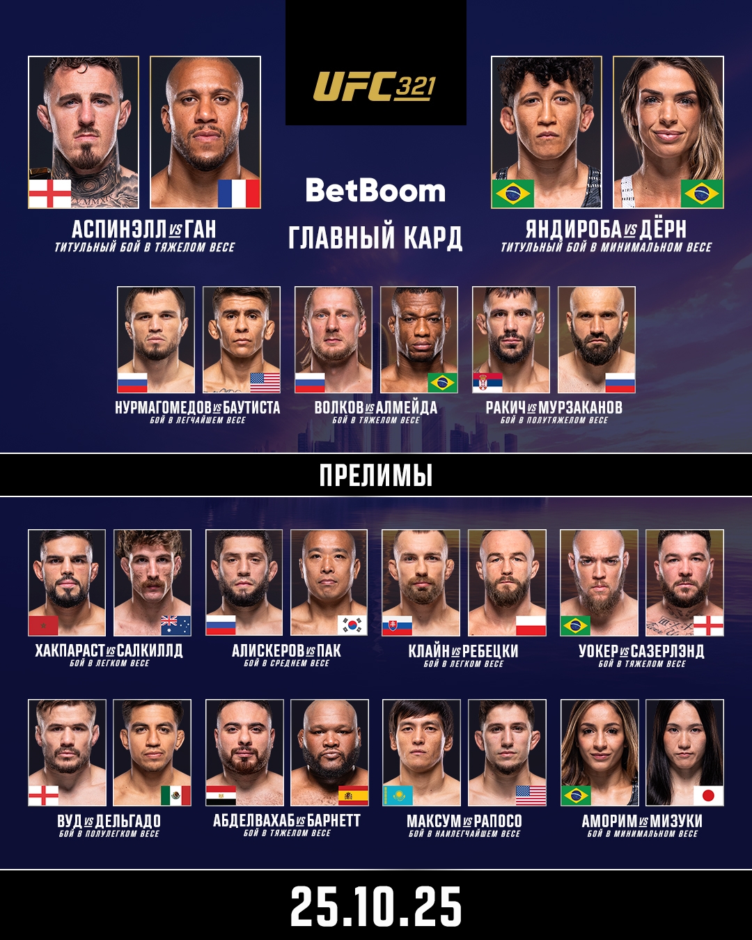 Аспинэлл против Гана, возвращение Волкова и Нурмагомедова, поединки Мурзаканова, Алискерова и другие бои уже сегодня!